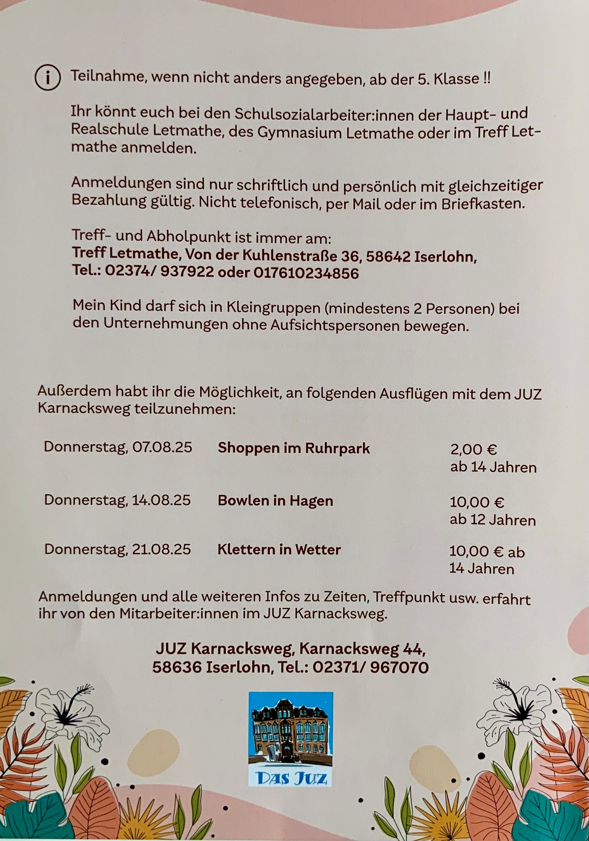 Falls Sie einen Termin vereinbaren wollen, melden Sie sich bitte telefonisch bei uns. Danke.